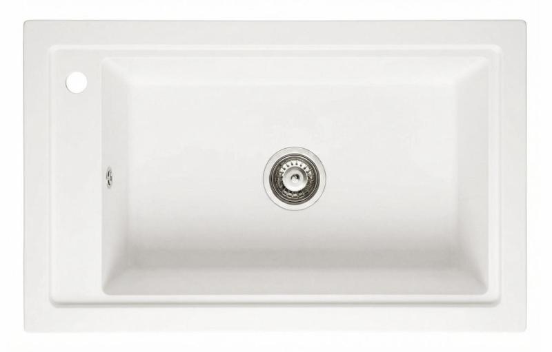 Graniteland Magra Granite White Top Mount Sink 686 x 427 mm with tap hole bank and Stainless Steel Plug 1208970614