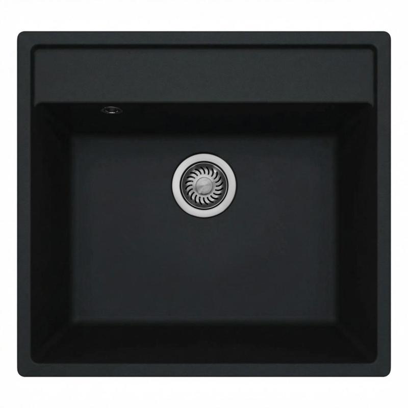 GraniteMy Bremen granite sink 53x50 cm black top mount, undermount and flush mount with faucet bench WITH STAINLESS STEEL PLUG Top mount, undermount, or flush mount installation