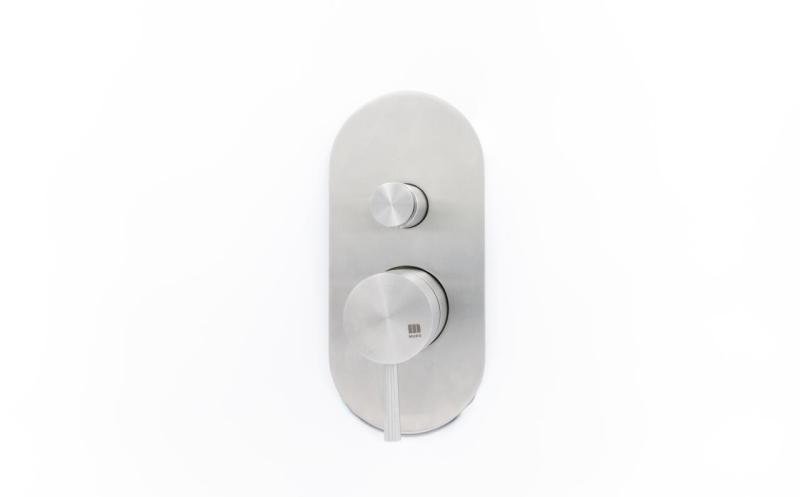 A váltógombbal könnyedén válthat a két kimeneti csatlakozás, például a fejzuhany és a kézi zuhany között. A kezelés egy letisztult karral történik, míg a mellékelt fedőrozetta gondoskodik a tiszta és minimalista falburkolatról.