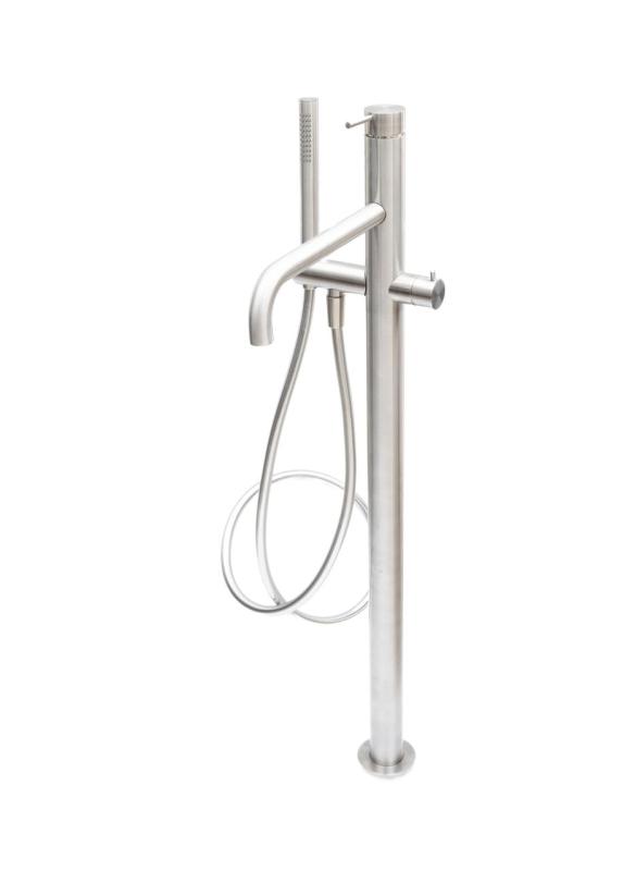 AzMURO TUA szabadon álló kádcsaptelep kézi zuhannyal a luxust, a kényelmet és a dizájnt képviseli. Tökéletes választás exkluzív fürdőszobákba, ahol a kád áll a középpontban.