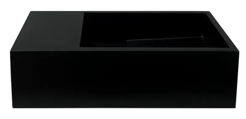 Solid-S Szolid felületű, matt fekete mosdó, B36xD18xH10 cm, fedéllel, bal oldali kivitel, csaptelepnyílás nélkül, 1208954157