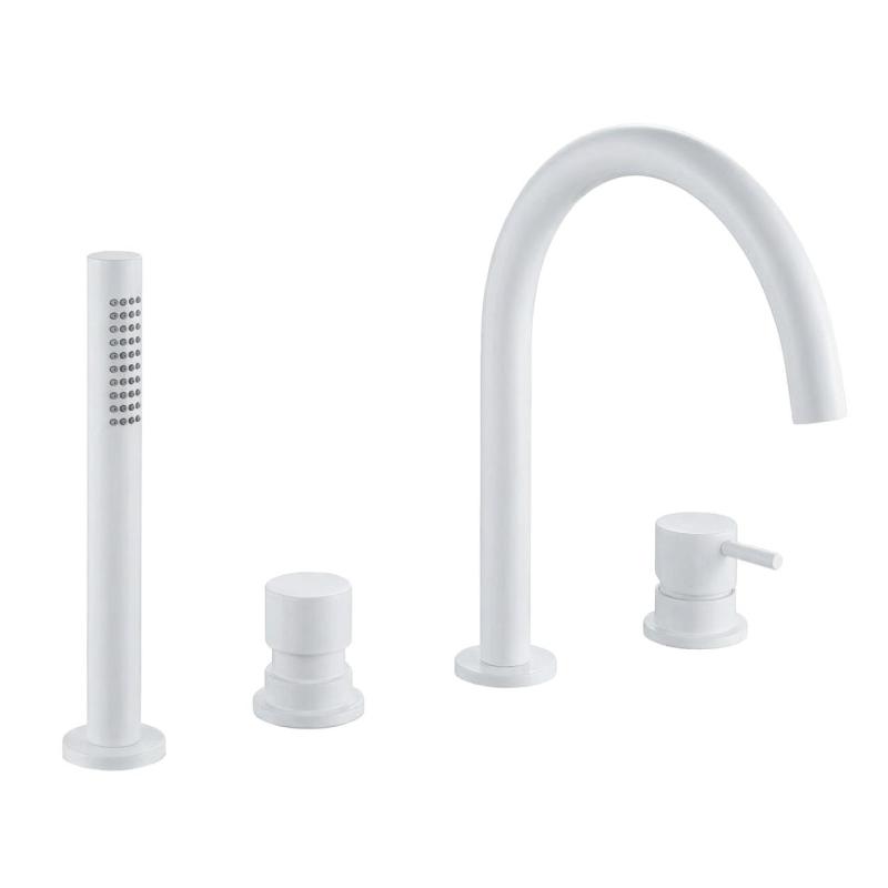 The Waterevolution Flow 4-hole Bath Faucet for Bath Rim Mounting White T138BR is a beautiful addition to your bathroom. This bath faucet has a look that suits a modern and contemporary design.